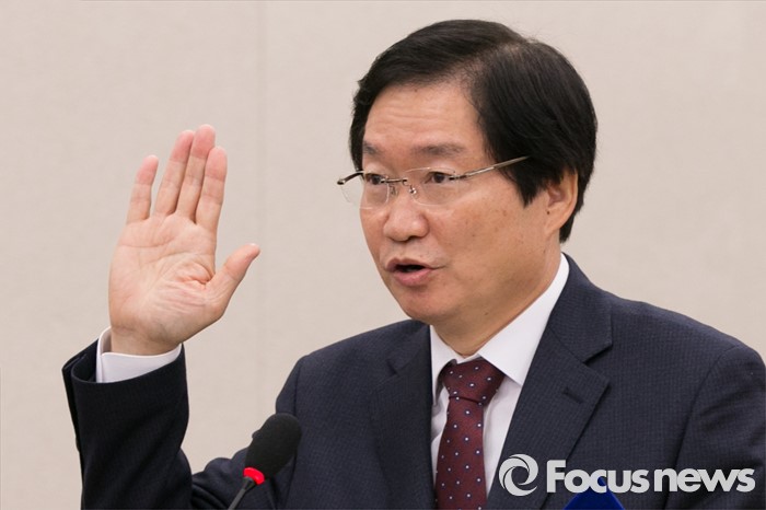 (서울=포커스뉴스) 김영석 해양수산부 장관 후보자가 9일 오전 서울 여의도 국회 농림축산식품해양수산위원회 전체회의실에서 열린 인사청문회에 출석해 선서를 하고 있다.