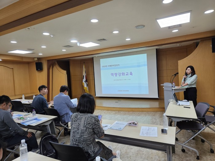 [부자동네타임즈 김인수기자] 지난 30일 각 구청, 동 행정복지센터 사례관리 담당자 50명이 참석한 가운데 ‘2023년 사례관리담당자 역량 강화 교육’을 실시하였다.