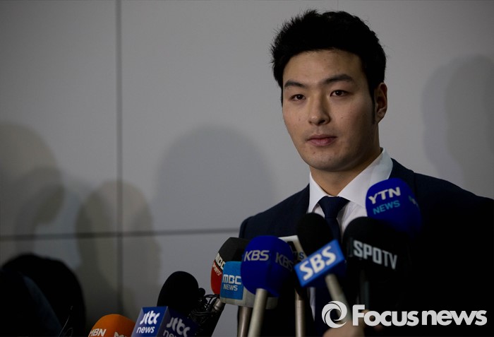 | △ 미국 메이저리그 미네소타 트윈스와 계약을 준비중인 야구선수 박병호가 지난달 29일 오후 인천국제공항에서 출국 전 기자회견을 열고 입장을 발표하고 있다. <사진제공=포커스뉴스> |