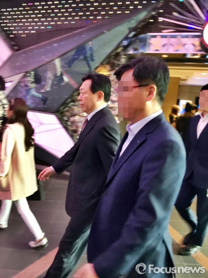 | △ 2일 오전 신동빈 롯데그룹 회장이 롯데정책본부에서 나와 소공동 롯데호텔 본관으로 가기 위해, 스타애비뉴를 지나가고 있다 |