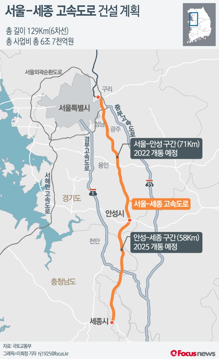 [부자동네타임즈 이채봉 기자] 국토교통부는 19일 서울-세종 간을 연결하는 129Km(6차선)의 고속도로 건설 사업을 추진한다고 밝혔다.
