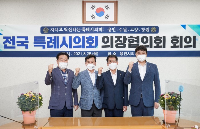 [부자동네타임즈 김인수기자] 고양시의회 이길용 의장이 8월 26일 용인시의회 대회의실에서 개최된 4개 특례시의회 의장협의회 제7차 회의에 참석했다.