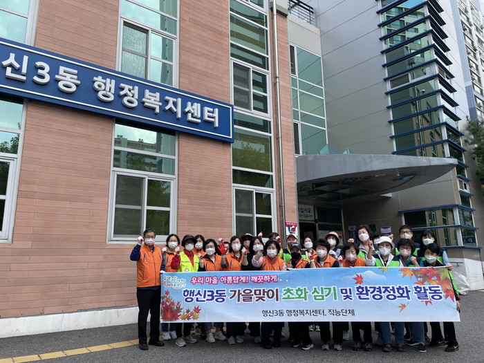 이번 초화 식재에는 행신3동 직능단체 회원 20여 명이 참여하여 동 행정복지센터 주변 중앙로 558번길 일대 가로화분 30여 개에 국화 약 100주를 식재하고 동 청사 인근 무단투기 쓰레기 등을 수거했다.