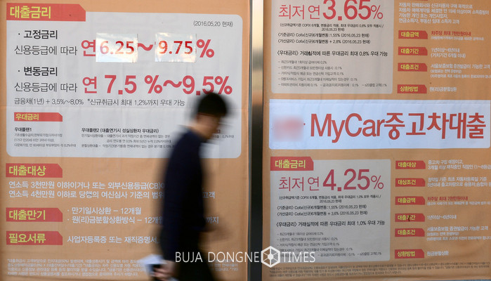 우리나라 가계 빚이 1300조원 돌파를 목전에 두고 있다. 24일 한국은행에 따르면 2016년 3분기 가계신용은 예금취급기관의 가계대출 잔액과 카드사, 자동차 할부 등 판매신용금액을 포함해 1295조8000억원으로 전분기 대비 38조1700억원(3.0%) 증가했다. 사진은 이날 오후 서울 시내 한 은행에 붙은 대출 관련 안내문. 2016.11.24.