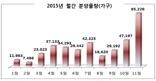 이는 올해 가장 많은 일반 분양 물량이며 10월(4만7197가구) 대비 2배 넘는(101.8%) 규모다.