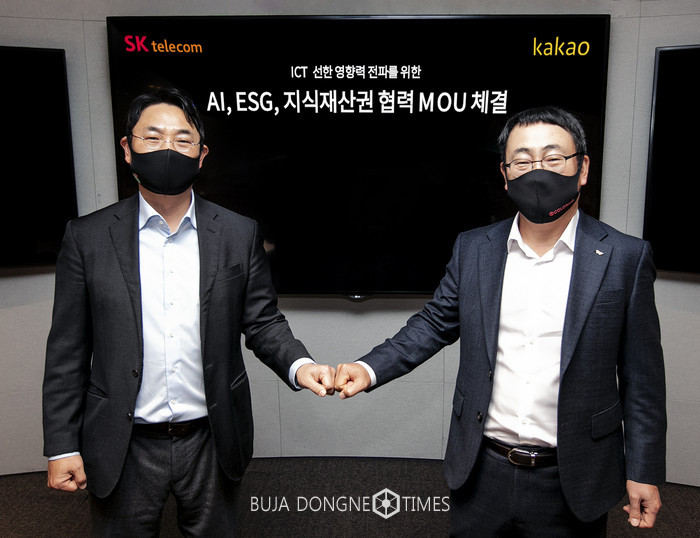 [부자동네타임즈 이교영 기자]SK텔레콤과 카카오가 AI, ESG(환경·사회·지배구조), 지식재산권 분야에서 상호 협력하고 해당 분야 기술 등 주요 자산을 우리 사회와 나누는 데 뜻을 같이 했다.