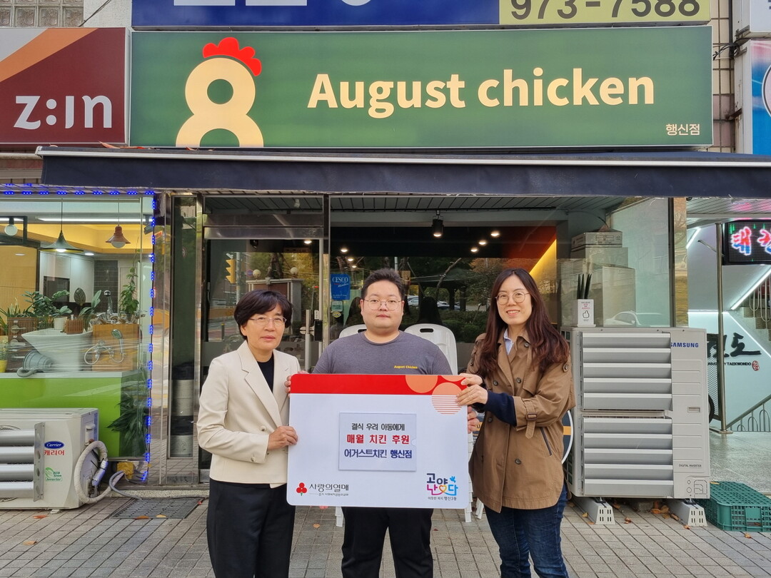 행신3동 소재의 어거스트치킨 행신점은 지난 2022년 3월부터 매달 조손, 한부모 가정 등 결식우려 아동이 있는 관내 저소득층 18가구에 원할 때 언제든지 치킨과 교환할 수 있는 치킨 쿠폰을 제공하고 있다.