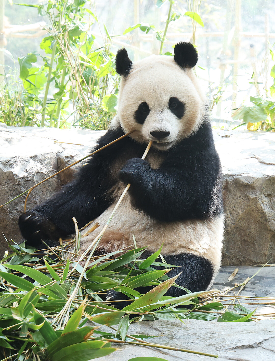 [부자동네타임즈 = 서소민 기자] 2일 경기도 용인시 에버랜드에서 생후 1000일을 맞은 쌍둥이 판다 후이바오가 먹이를 먹고 있다. 2026.4.2