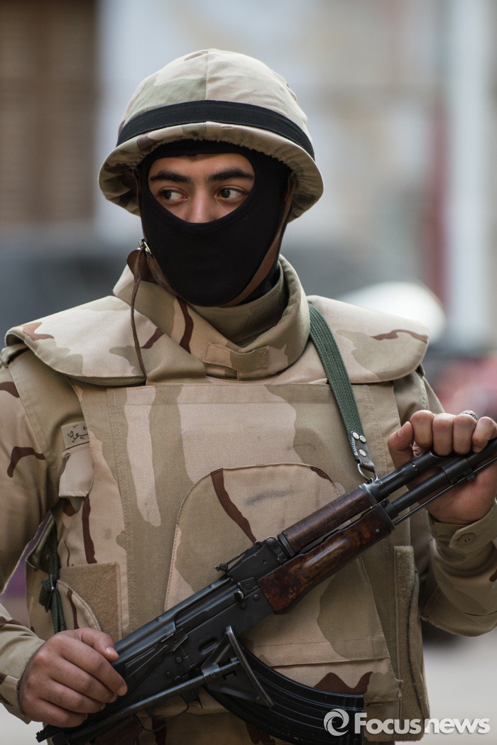 | △ (카이로/이집트=신화/포커스뉴스) 지난 22일(현지시간) 이집트 수도 카이로에서 한 군인이 투표소를 지키며 주위를 경계하고 있다. 24일엔 판사와 검사, 선거관리위원들이 묵고 있던 이집트 시나이반도의 한 호텔에서 테러가 발생해 최소 7명이 숨지는 사고가 발생했다. 신화/포커스뉴스 photo@focus.kr |