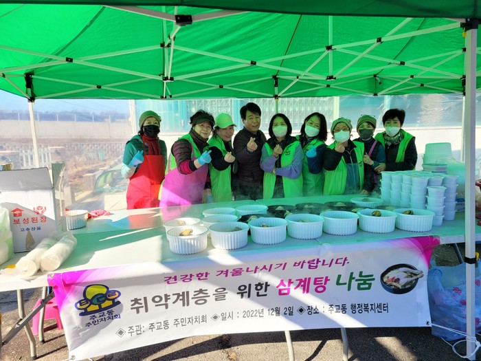 [부자동네타임즈 김인수기자] 고양특례시 주교동 주민자치회는 지난 2일 취약 계층 주민의 건강한 겨울나기를 돕기 위해 50가구에 전복 삼계탕 및 무김치를 전달했다.