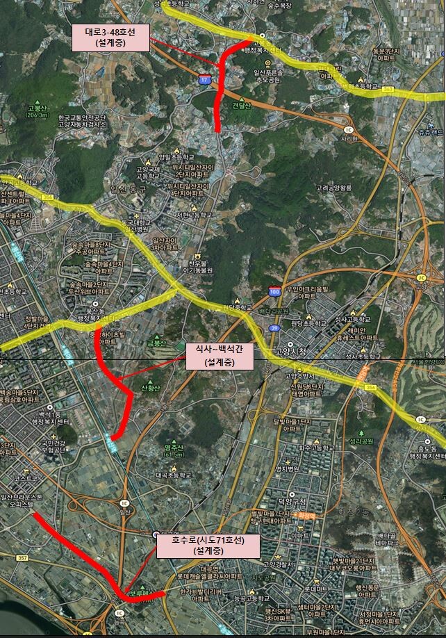 시는 올해 고봉동에서 제2자유로까지 고양시를 남북으로 연결하는 3개 도로 개설‧확장사업을 진행하고 있다. 실시설계비 20억원을 들여 ▲식사동~문봉동 도로개설(대로3-48호선, 1.6km) ▲식사동~백석동 도로개설(2.1km) ▲백석동~토당동 연결 호수로 확장(시도71호선, 2.5km) 등 총 6.2km 구간 설계를 진행 중이다.