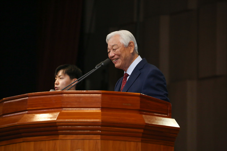 | ▲박옥수 목사가 인사말을 전하고 있다. |