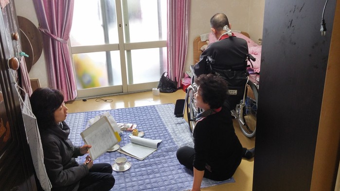 △ 더함복지사가 위기가정을 방문해 상담하고 있다.