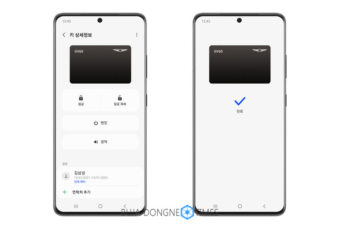 스마트폰 접촉 없이 차문 잠금 해제·잠금. 안전한 키 공유도 가능