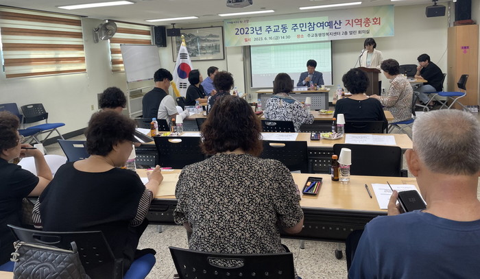 [부자동네타임즈 김인수기자] 고양특례시 주교동은 지난 16일 지역회의 위원 및 지역주민들이 참석한 가운데 ‘2023년 주교동 주민참여예산 지역총회’를 개최했다.