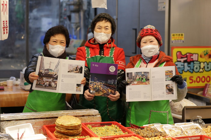 [사진설명] 2월호 인터뷰에 참여한 원당시장 상인들이 즐거운 표정으로 개편된 고양소식을 들어 보이고 있다. 원당시장 이야기는 소식지 20쪽에서 볼 수 있다.