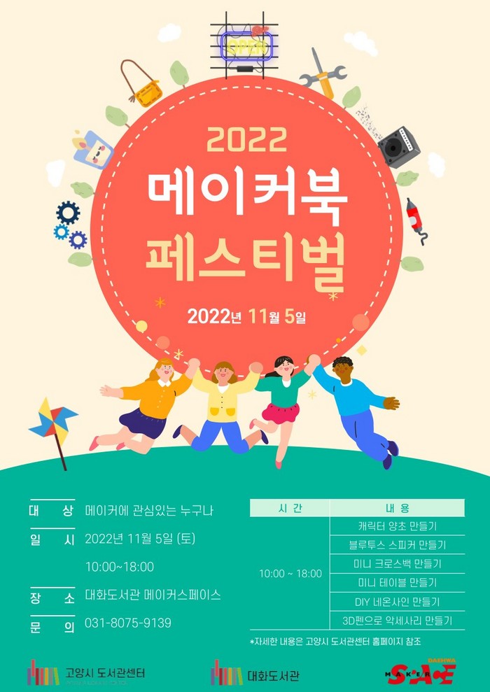 [부자동네타임즈 김인수기자] 고양특례시(시장 이동환) 도서관센터는 ‘실생활에 필요한 메이커 체험’을 주제로 오는 11월 5일 대화도서관에서 『2022 대화도서관 메이커 페스티벌』을 개최한다고 밝혔다.