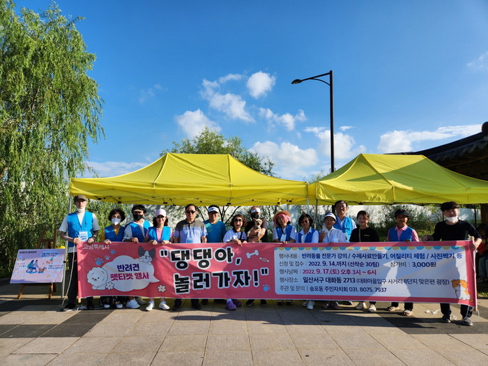 [부자동네타임즈 김인수기자] 고양특례시 송포동 주민자치회(회장 이희재)가 지난 9월 17일 대화마을입구 사거리 광장(대화동 2713번지) 및 인근 공원 산책로에서 주민과 함께하는 「반려동물 펫티켓 행사」를 개최했다.