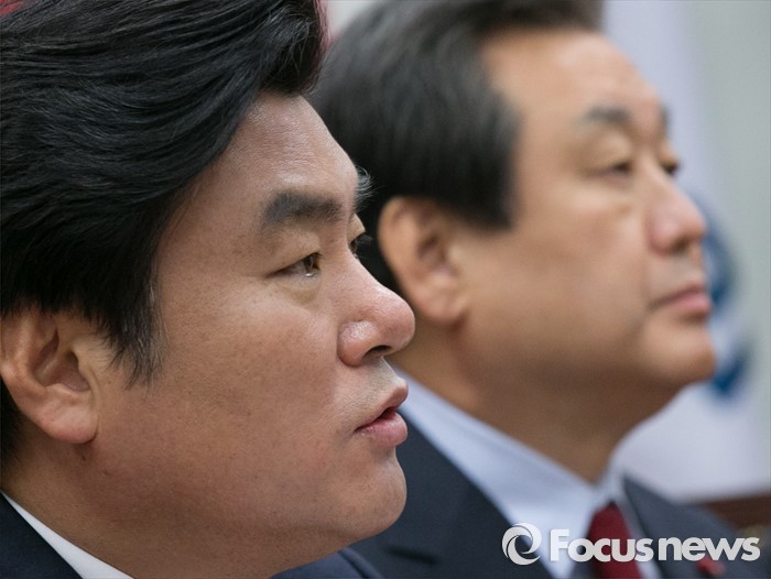 △ 원유철(왼쪽) 새누리당 원내대표가 10일 오전 서울 여의도 국회에서 열린 최고위원회의에 참석해 발언하고 있다. <사진제공=포커스뉴스>