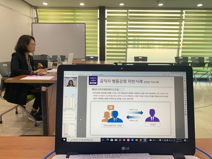 교육에서는 청렴의 중요성, 청탁금지법 및 행동강령의 이해, 부당업무지시 유형과 사례, 직장 내 갑질 등 갈등상황에서 대처법 등의 내용을 다뤘다. 또한, 실시간 채팅창을 통해 O·X 퀴즈, 질의응답 등 적극적인 참여를 유도해 교육에 참석한 공직자들로부터 큰 호응을 얻었다.