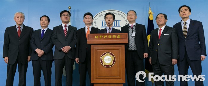 (서울=포커스뉴스) 7일 오전 서울 여의도 국회 정론관에서 이대의 민주당(구 새정치민주연합) 전 경기도당 위원장을 비롯한 전국위원장 모임이 기자회견을 열고 현재 추진되고 있는 박주선 무소속 의원, 천정배 무소속 의원, 박준영 전 전남도지사 등 모든 세력이 하나로 뭉치는 통합신당 창당을 촉구하고 있다.