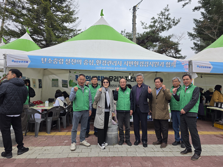 한국환경관리사충주시협의회는 2026년 4월 11일부터 12일까지 열리는 수안보축제 현장에서 탄소중립 실천과 자원순환 인식 확산을 위한 체험형 환경캠페인 부스를 운영하며 방문객들의 큰 호응을 얻고 있다.
