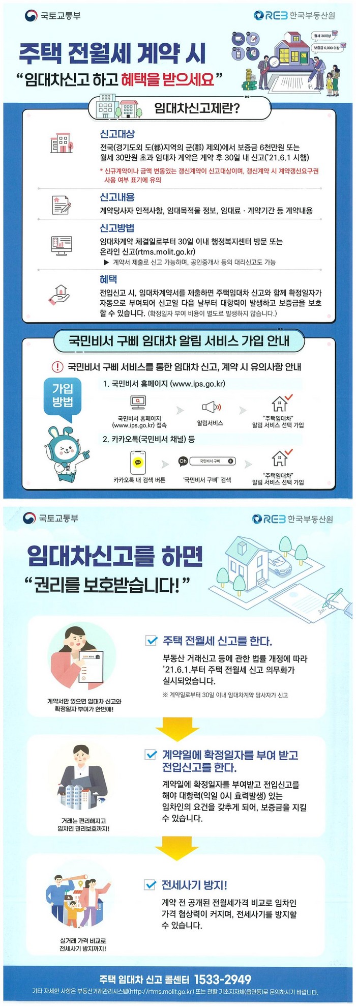 구청 관계자는 “임대차 신고를 할 때 계약일로부터 30일이 지날 시, 과태료가 부과될 수 있으니 임대차 계약 당사자가 이를 누락하지 않게 여러 홍보를 실시하겠다.”라고 전했다.