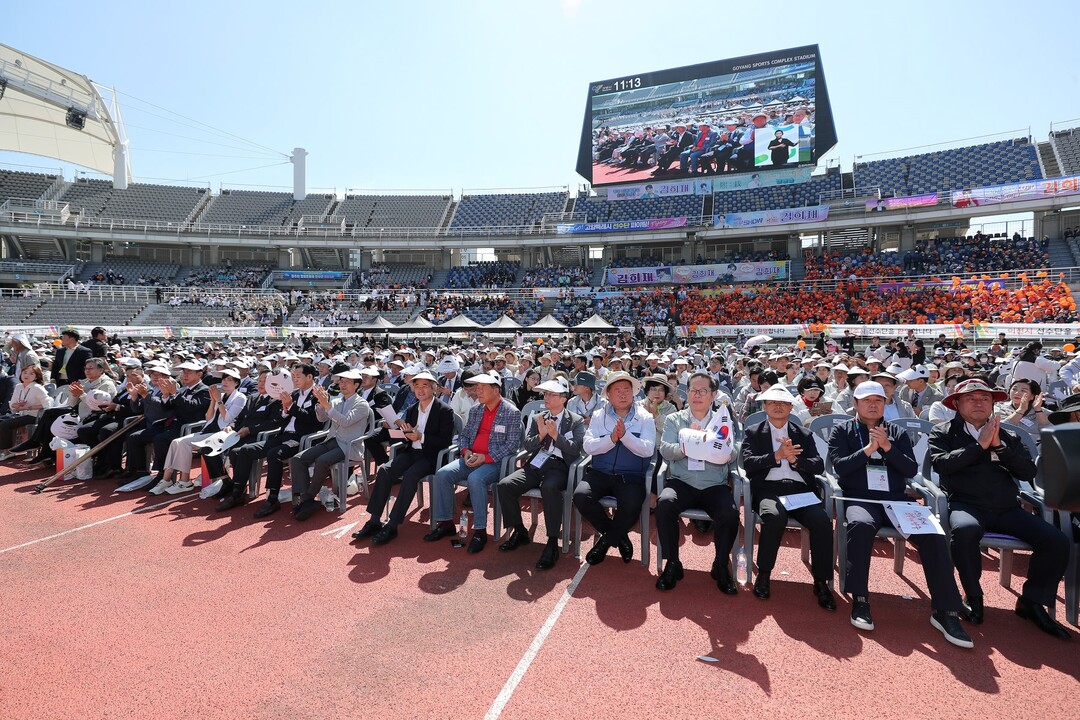 이날 고양태권도시범단, 쏘노리테 앙상블 중창단, 엔젤킹 치어리딩단의 공연을 시작으로 31개 시군 기수단 입장식 등 공식 행사가 진행됐다.