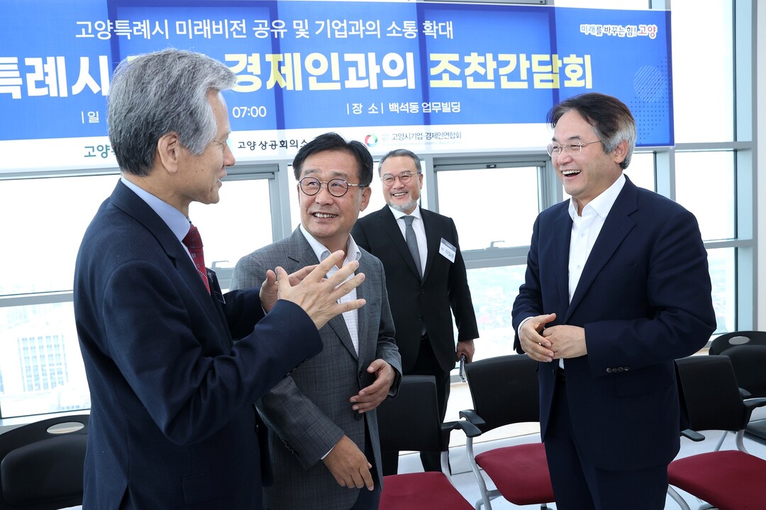 간담회에서 이동환 고양특례시장은 “고양시는 뛰어난 정주환경으로 살기 좋은 도시지만 과밀억제권역 등 3중 규제로 인해 기업을 효율적으로 운영하기에 다소 어려운 여건”이라며 “지난해 경제자유구역 후보지로 선정된 고양시는 경제자유구역 최종 지정을 위해 노력하고 있다. 경제자유구역으로 지정받아 기업을 경영하기 좋은 환경이 될 수 있도록 최선을 다하겠다”고 말했다.