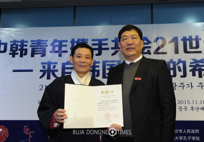 | △윤장현 광주광역시장이 중국 후난대로부터 명예교수로 위촉 특강 |