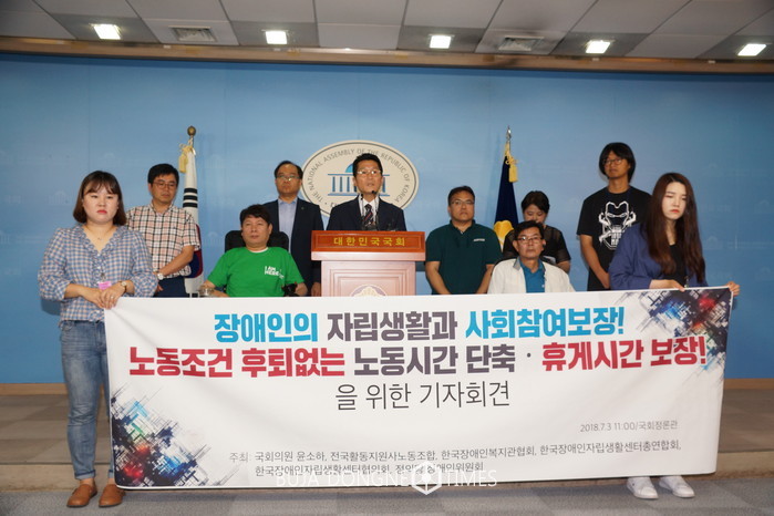 6월11일 보건복지부는 장애인활동지원사업 제공인력 휴게시간 세부지원방안 지침개정을 현장에 전달하였다.그동안 노동시간과 휴게시간등 근로기준법에 대한 고민없이 제도를 운영해 온 정부는 개정된 근로기준법을 현장에 적용하는 과정에서 장애인의 생명권을 위협하고 결정권을 침해하는 상황의 발생 노동자의 노동시간이 늘고 임금은 줄어드는 현실에 대한 대책 없이 법의 적용만을 요구하고 있다