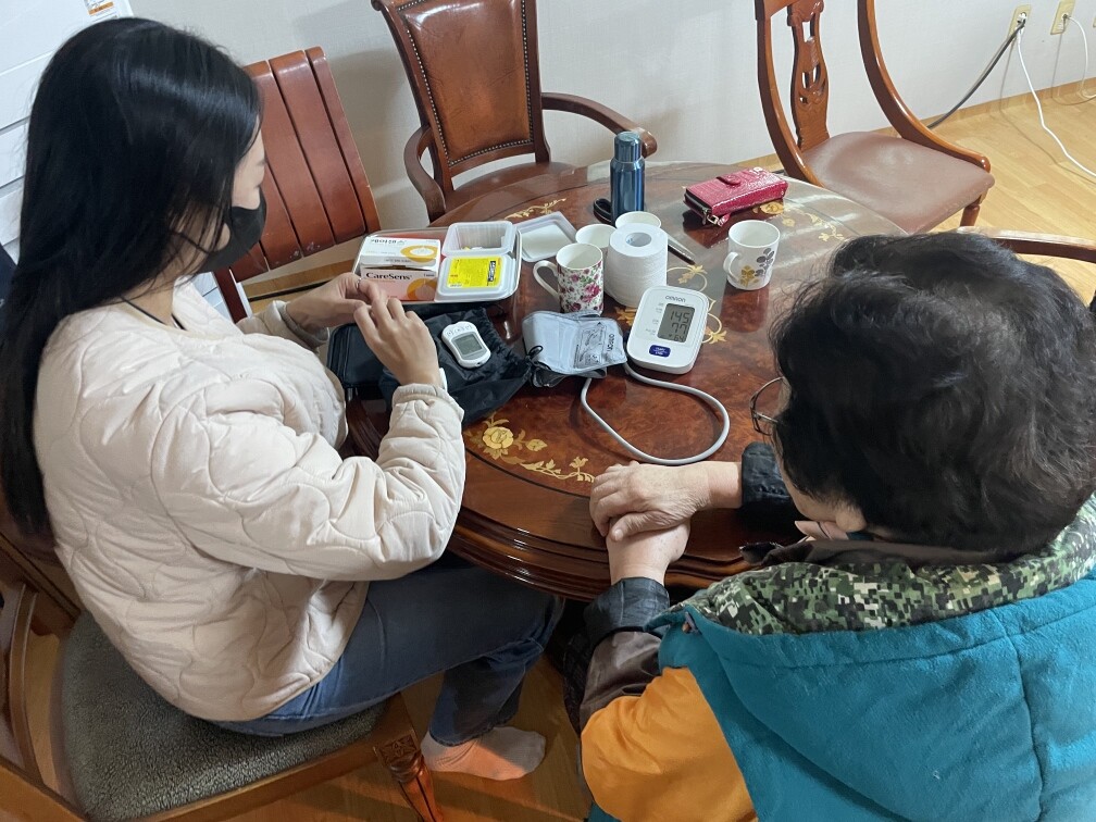 ‘찾아가는 건강체크’에서는 혈압과 혈당 검사를 진행해 어르신들이 많이 갖고 있는 기저질환인 고혈압과 당뇨 유무를 확인했다. 또한 고혈압과 당뇨에 대한 기초 상식과 예방·관리를 위한 식단표를 이용하여 건강한 식습관의 중요성에 대한 정보를 전달했다.