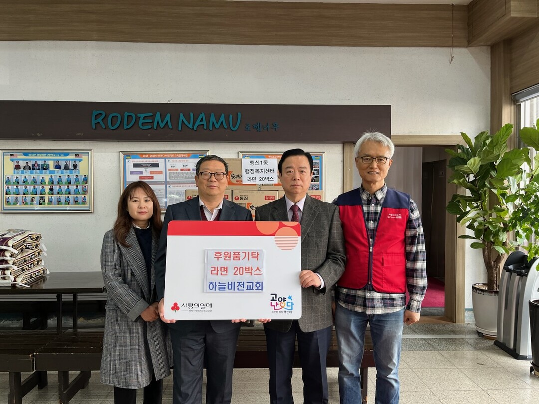 [부자동네타임즈 = 김인수 기자] 고양특례시 행신1동은 지난 21일 행신1동 관내 하늘비전교회로부터 저소득층을 위한 라면 20박스를 기탁 받았다.