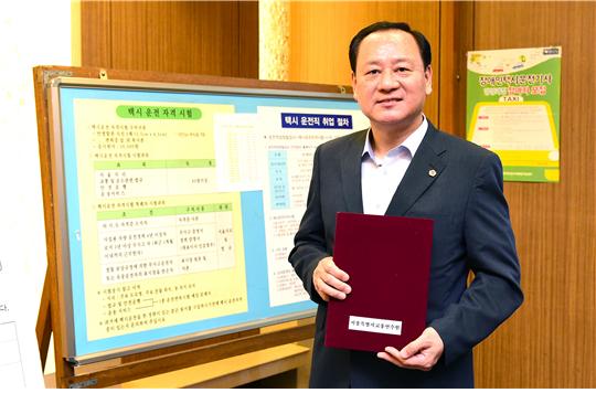 유동균 의원은 교육 이수 뒤 택시운전 개시용 자격증을 발급받아 본격적인 민생탐방에 나선다.