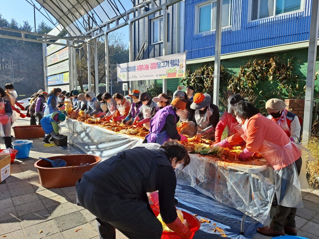 이번 행사를 위해 대화동 주민자치회, 통장협의회, 체육회, 바르게살기협의회, 적십자봉사회, 지역사회보장협의체 등 대화동 각 직능단체는 하루 전날부터 모여 김치에 필요한 재료를 구비 하였고 21일에는 전날 구비된 재료에 양념을 버무려 김장행사를 진행하였다.