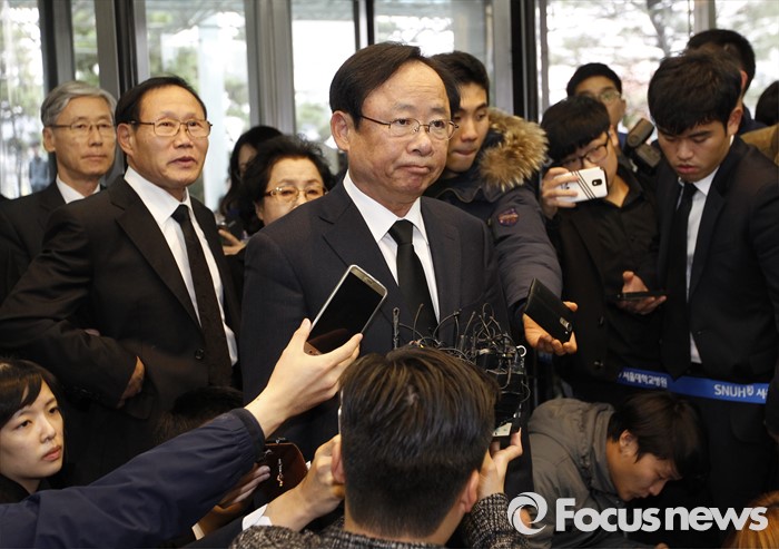 | △ 이주영 새누리당 의원이 김영삼 전 대통령이 서거한 지난 22일 오후 서울 종로구 서울대병원 장례식장에 마련된 김 전 대통령 빈소로 들어가며 취재진의 질문에 답변하고 있다. <사진제공=포커스뉴스> |