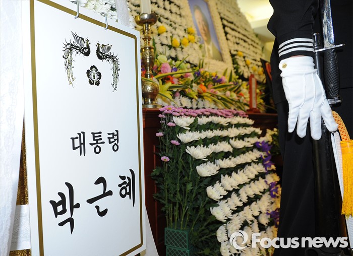 | △ 김영삼 전 대통령이 서거한 22일 오후 서울 종로구 서울대병원 장례식장에 마련된 고인의 빈소에 한아세안 정상회담에 참석한 박근혜 대통령이 보낸 근조화환이 놓여져 있다. 사진공동취재단 photo@focus.kr |