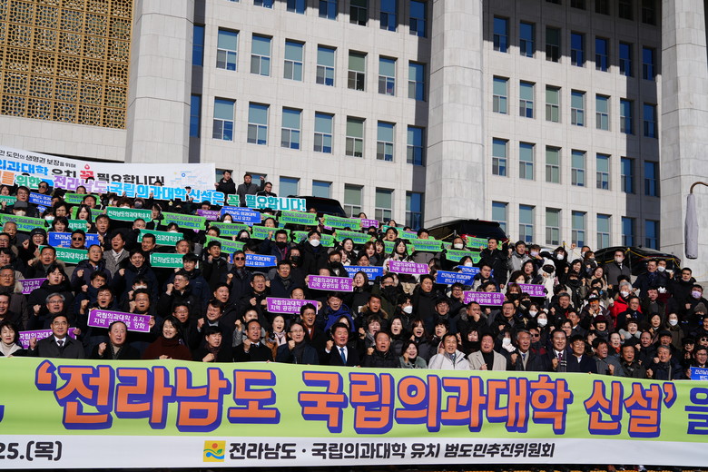 1월 25일 전라남도 국립의과대학 유치 범도민추진위원회(이하 범추위)가 국회의사당 앞에서 ‘전라남도 국립의과대학 유치 범도민 결의 행사’를 개최하고, 국립의과대학 유치에 대한 의지를 굳건히 다졌다.
