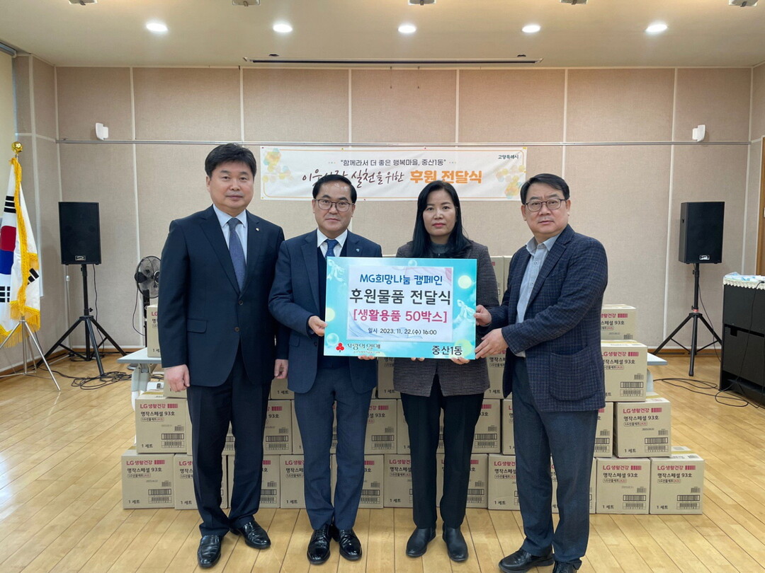 고양시 일산새마을금고, 중산1동에 생활용품 50박스 기탁.