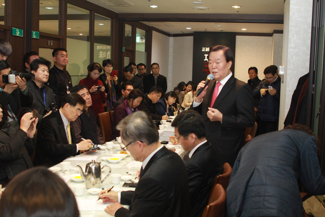 △ 김경재 전 대통령비서실 홍보특보가 한국인터넷신문방송기자협회와 단독으로 오찬 기자간담회를 가졌다.