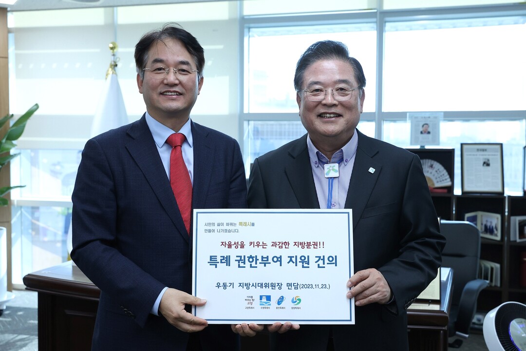 [부자동네타임즈 = 김인수 기자] 이동환 고양특례시장이 특례시 지방분권을 강화하기 위해 23일 세종시에서 수원·용인·창원 특례시장과 함께 지방시대위원장과 만났다.