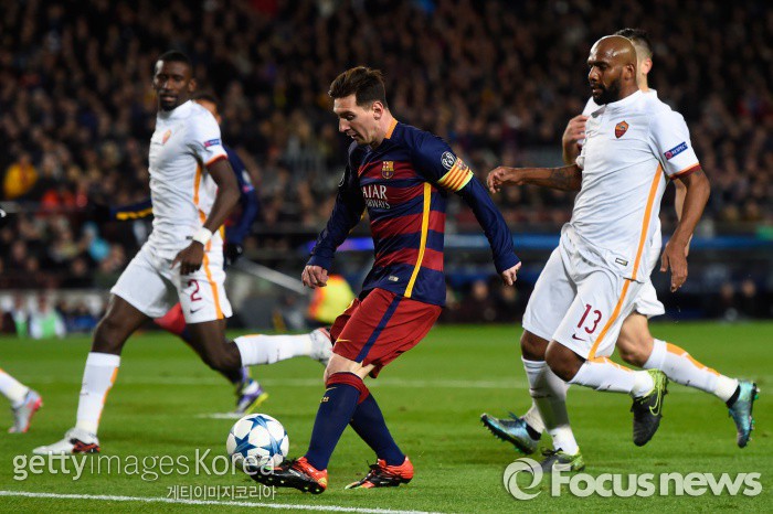 | △ <바르셀로나/스페인=게티/포커스뉴스> 바르셀로나 소속 리오넬 메시가 11월25일 새벽(한국시간)에 열린 AS로마와의 챔피언스리그 조별라운드 홈경기에서 슛을 시도하고 있다. (C)게티이미지/멀티비츠 |