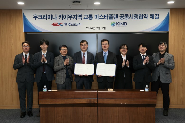 한국도로공사(사장 함진규)는 2일(금) 판교 EX-스마트센터에서 한국해외인프라도시개발지원공사(이하 KIND, 사장 이강훈)와 함께 우크라이나 키이우 지역 교통 마스터플랜 사업 추진을 위한 공동시행협약을 체결했다고 밝혔다.