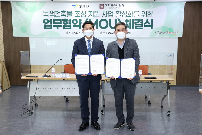 [부자동네타임즈 김인수기자] 고양시가 민간전문가인 고양지역건축사회와 녹색건축물 조성 지원 사업 활성화를 위한 업무협약(MOU)을 28일 체결했다.