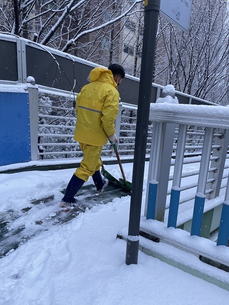 특히, 등·하교하는 학생들의 미끄럼 방지 등 사고에 대비하여 ▲일산보도·육교 ▲초등학교 주변 인도 ▲횡단보도 ▲버스 승강장 등을 중심으로 제설작업을 실시했다.