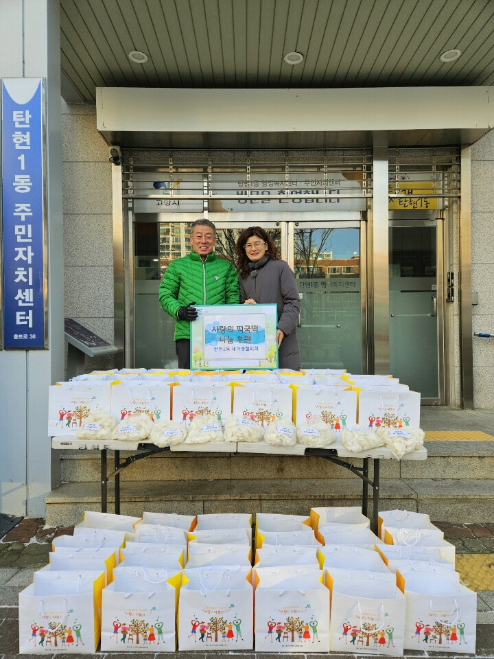 정성껏 준비하여 전달된 떡국떡 50상자는 탄현1동의 저소득대상자와 독거어르신 가구에 전달될 예정이다.