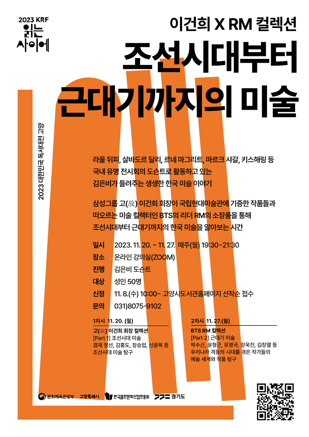 - 김은비 미술해설사가 진행하는 고(故) 이건희 회장, 방탄소년단(BTS) 알엠(RM)의 소장품으로 알아보는 한국미술.