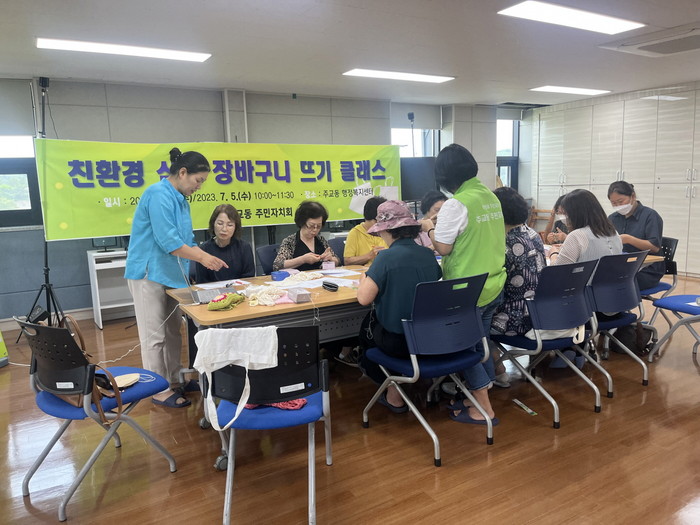 [부자동네타임즈 김인수기자] 고양특례시 주교동 주민자치회는 지난 28일 동 행정복지센터에서 지역주민들과 함께 ‘친환경 삼베 장바구니 뜨기’ 행사를 진행했다.