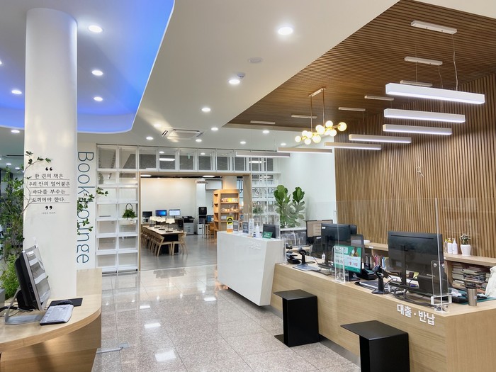 또한 1층 로비 공간은 이용편의를 위한 통합데스크를 마련하면서 그 기능이 향상 되었다. 2층 종합자료실은 기존의 서가와 장서를 재정비하고, 창가의 바 테이블과 북큐레이션 전시서가를 새롭게 조성하여 보다 안락한 독서공간으로 거듭나게 되었다.