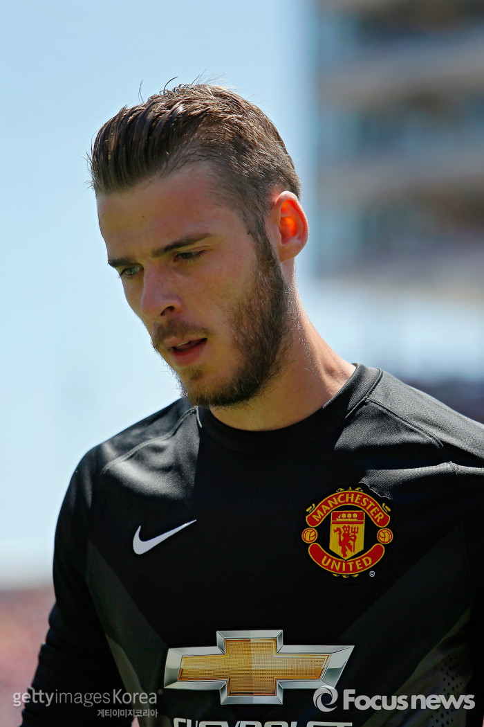 △ <캘리포니아/미국=게티/포커스뉴스> 맨체스터 유나이티드 골키퍼 데 헤아가 7월25일(한국시간) 미국 산타클라라에서 열린 바르셀로나와의 인터내셔널 챔피언십 경기 중 아쉬운 표정을 짓고 있다. (C)게티이미지/멀티비츠